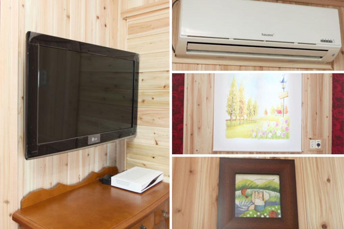 - 시설 : TV, 침대, 에어컨, 냉장고, 가스렌지, 드라이기, 취사, 전기밥솥, 욕실용품